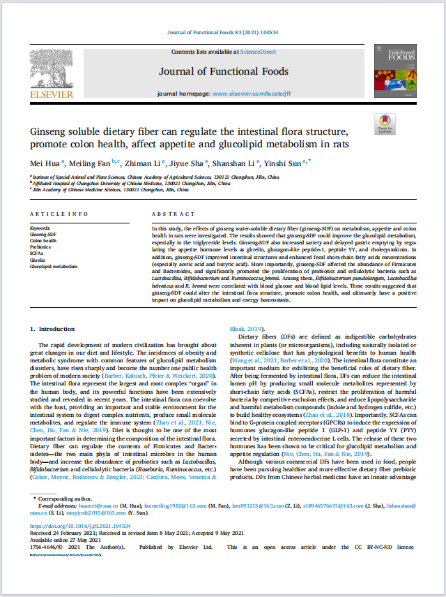 <div><br /> 【引用產品】:<span style="font-size: medium;"><strong><a href="http://www.xsjh.com.cn/goods-59461.html"><span style="color: rgb(51, 153, 102);"><u>Rat ghrelin ELISA Kit</u></span></a></strong></span></div> <div>&nbsp;</div> <div>【產品貨號】:ml059461</div> <div>&nbsp;</div> <div>【論文標題】:Ginseng soluble dietary fiber can regulate the intestinal flora structure, promote colon health, affect appetite and glucolipid metabolism in rats</div> <div>&nbsp;</div> <div>【論文網址】:<span style="color: rgb(255, 0, 0);"><strong><a href="https://www.sciencedirect.com/science/article/pii/S1756464621001833"><span style="color: rgb(255, 0, 0);"><u>https://www.sciencedirect.com/science/article/pii/S1756464621001833</u></span></a></strong></span></div> <div>&nbsp;</div> <div>【影響因子】:4.451</div> <div>&nbsp;</div> <div>【反應物種】:Rat</div> <div>&nbsp;</div> <div>【第一作者】:Mei Hua</div> <div>&nbsp;</div> <div>【通信作者】:Mei Hua</div> <div>&nbsp;</div> <div>【發表時間】:2021-05-27</div> <div>&nbsp;</div> <div>【期 刊】:Journal of Functional Foods</div> <div>&nbsp;</div> <div>【單 位】:中國農業科學院特種動植物研究所</div> <div>&nbsp;</div> <div>【實 驗】:ELISA</div> <div>&nbsp;</div> <div>【組 織】:serum</div> <div>&nbsp;</div> <p>【DOI】:10.1016/j.jff.2021.104534&nbsp;<br /> <br /> <img src="/images/upload/Image/圖片1(6494).png" alt="" /></p>
