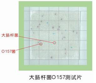 對(duì)測(cè)試片進(jìn)行觀察,呈紫紅色的菌落為大腸桿菌O157;呈藍(lán)色的菌落為其他大腸菌群。出現(xiàn)陽(yáng)性菌落的樣本,最好用其他更為可靠的方法進(jìn)行驗(yàn)證,沒有條件的至少要再取樣重復(fù)檢驗(yàn)一次。