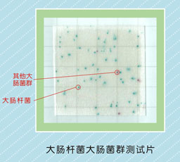 大腸桿菌(Escherichia coli)和大腸菌群(Coliform)都是存在于溫血動物腸道和糞便的細菌,是條件性致病菌,主要造成水體污染,也可能引起食物中毒的發生。大腸桿菌大腸菌群測試片(FilmplateTM E.coli&coliform count plate BE203)是一種預先制備好的一次性培養基產品,可以同時檢測大腸桿菌和大腸菌群,含有大腸菌選擇性培養基、冷水可溶性的吸水凝膠和半乳糖苷酶(GAL)和葡萄糖醛酸酶(GUD)指示劑。大腸桿菌顯藍色,其他大腸菌群顯紅色,藍點加上紅點為總的大腸菌群數。